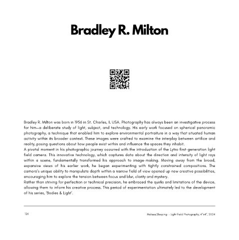 Bradley R. Milton was born in 1956 in St. Charles, IL USA. Photography has always been an investigative process