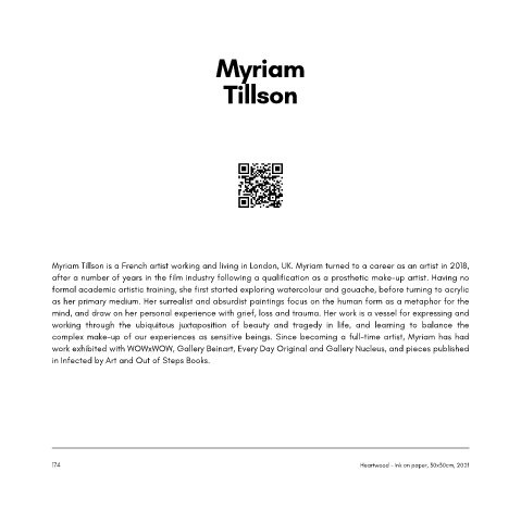 Myriam Tillson is a French artist working and living in London, UK. Myriam turned to a career as an artist in 2018,