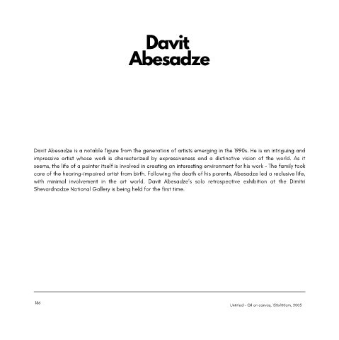 with minimal involvement in the art world. Davit Abesadze’s solo retrospective exhibition at the Dimitri