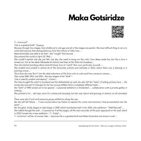 "I - tomorrow" will be, of course, then ... because life is a gradual birth and Maka Gotsiridze now knows it well ...