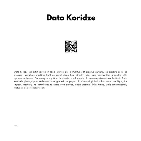 Dato Koridze, an artist rooted in Tbilisi, delves into a multitude of creative pursuits. His projects serve as