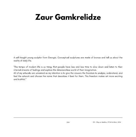 A self-taught young sculptor from Georgia. Conceptual sculptures are made of bronze and tell us about the