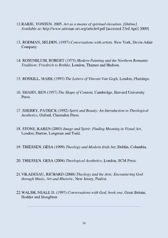 20. THIESSEN, GESA (2004) Theological Aesthetics, London, SCM Press.