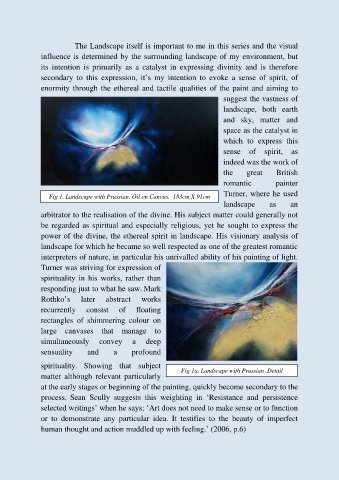 Fig 1. Landscape with Prussian. Oil on Canvas. 183cm X 91cm Turner, where he used