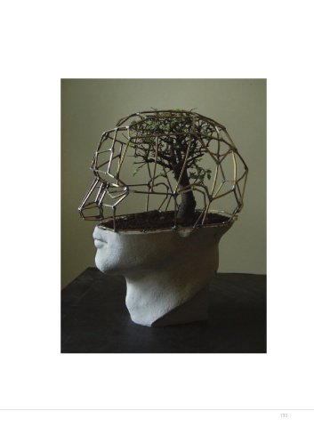 Right: COMA, 2014, Plaster, Brass, Bonsai Tree.