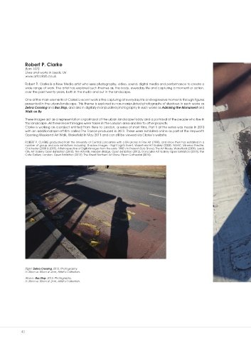Robert P. Clarke is a New Media artist who uses photography, video, sound, digital media and performance to create a