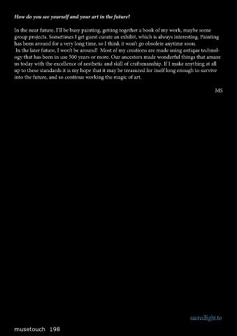 In the near future, I’ll be busy painting, getting together a book of my work, maybe some