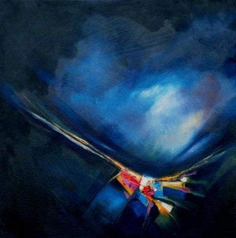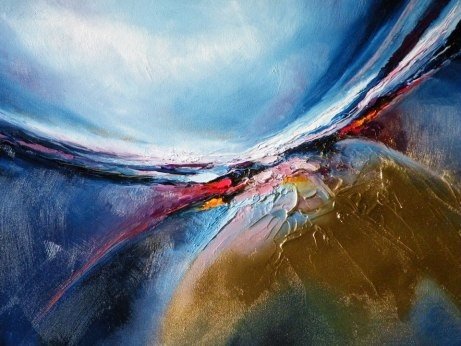 The Awakening series appears galactic; with curves and spheres evocative of swirling planets and nebulous stars.The texture of the paint is one of the most striking features of the work; peaks and crests in acrylic throb and pulse across the canvas.