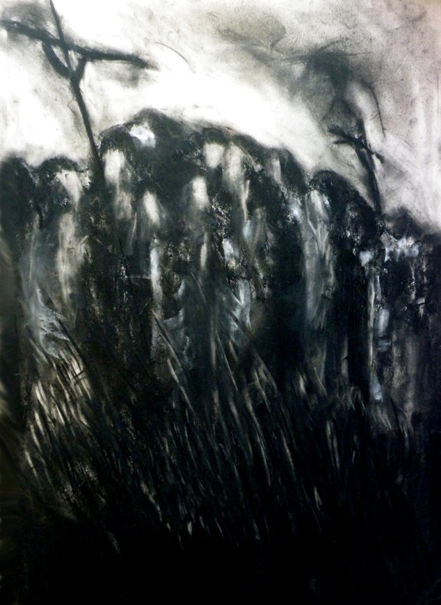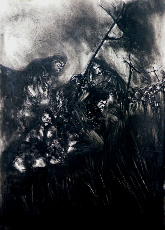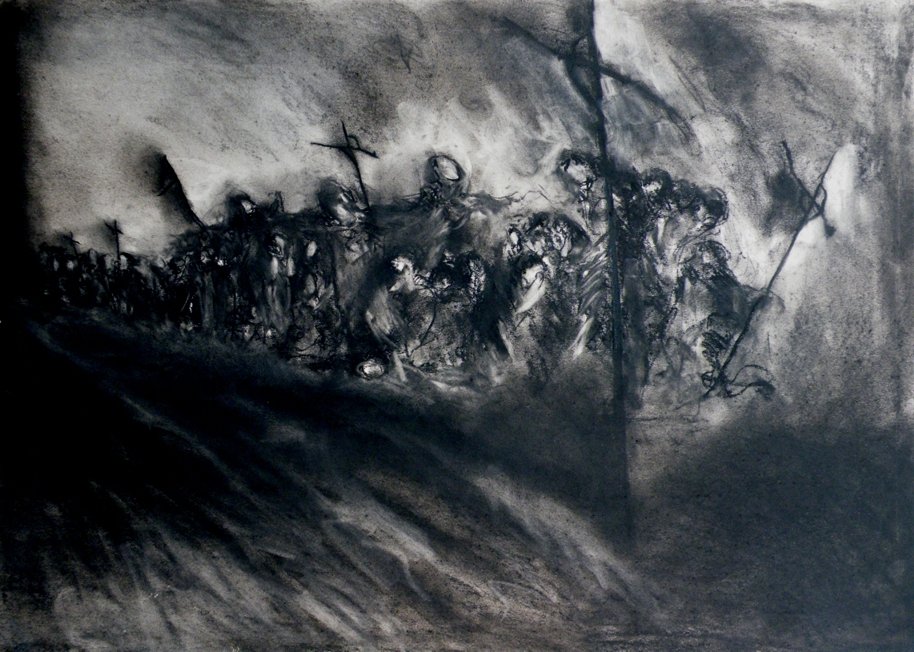Pilgrims - Procession Conte on Card 63 X 89 cm OSTEN Art Collection World Gallery Of Drawing, Skopje