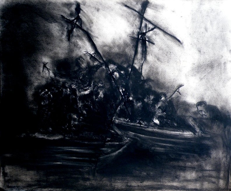Pilgrims -The Return Conte on Card 63 X 75 cm